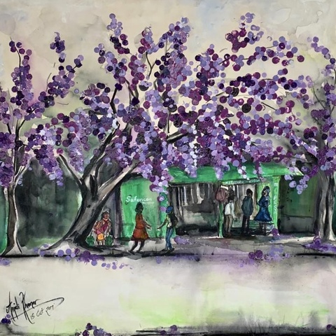 Anjali Khamar is a Nairobi-based fine artist who works with versatile mediums of expression including water colours, charcoal, chalk pastels, oils and acrylics on canvas.